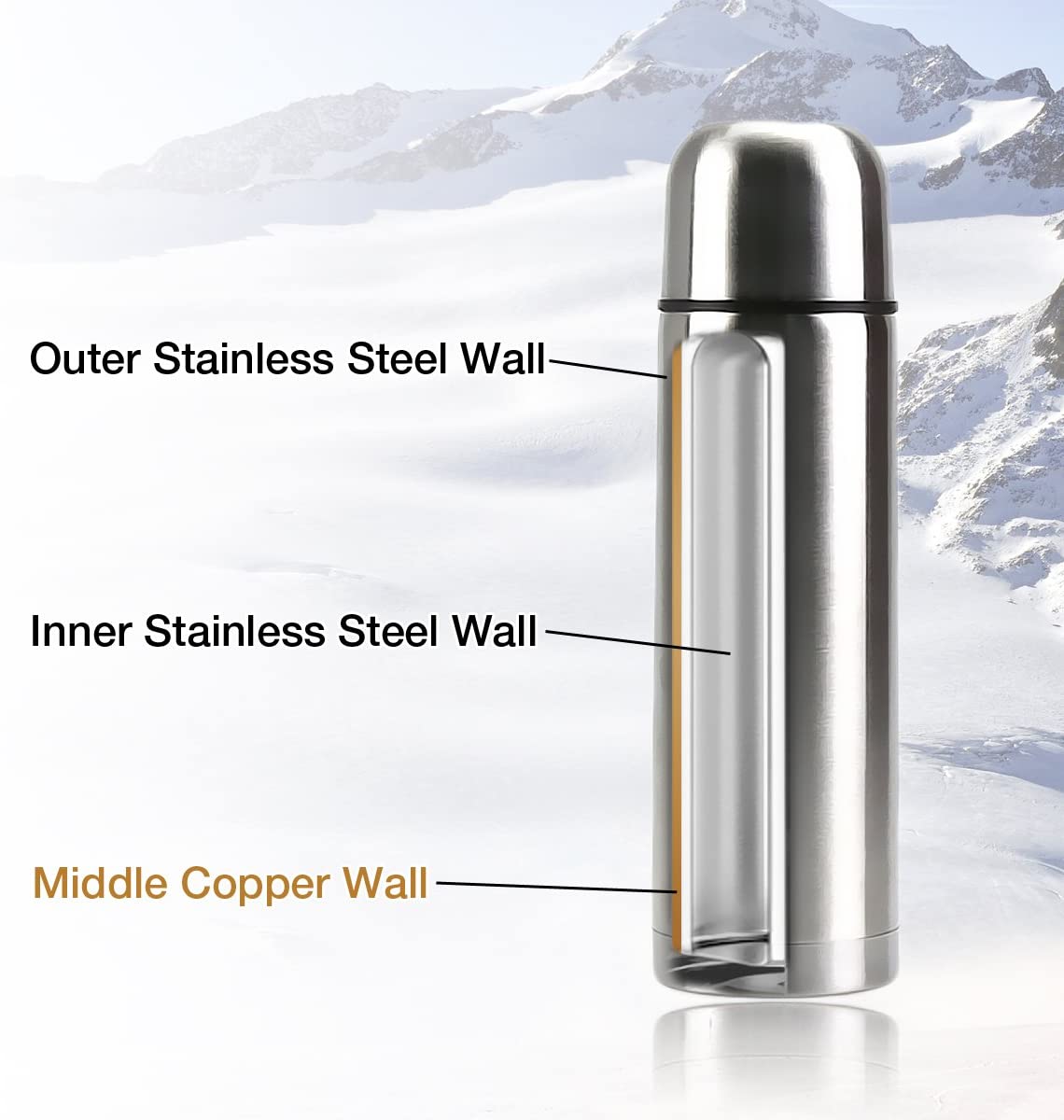 Bullet Flask มีชื่อเสียงในด้านรูปร่างและคุณสมบัติฉนวนกันความร้อน มันเป็นฉนวนสูญญากาศฝาปิดการรั่วไหลสามารถเก็บน้ำร้อนได้มากกว่า 12 ชั่วโมงและเก็บน้ำเย็นมากกว่า 16 ชั่วโมง ปากมีขนาดใหญ่คุณสามารถเอาน้ำแข็งเข้ามาได้ง่าย