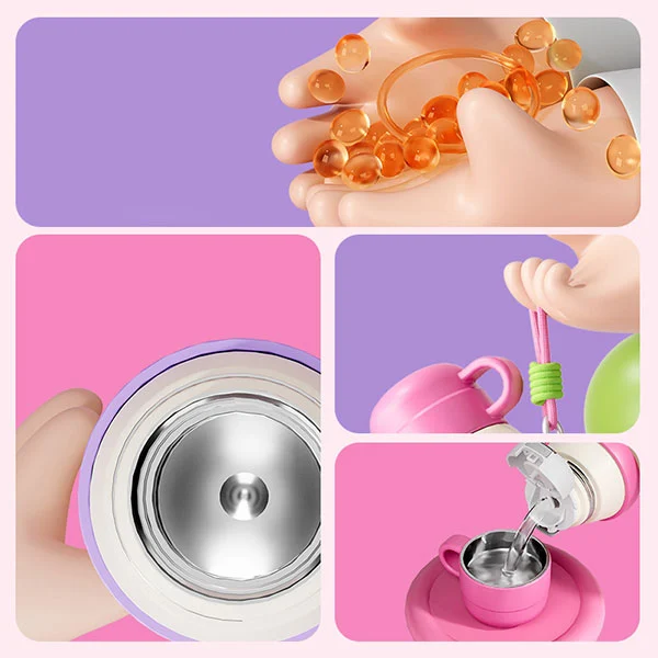 มันเป็นฉนวนสูญญากาศสามารถรักษาความอบอุ่นได้มากกว่า 18 ชั่วโมงมันเหมาะสำหรับการเดินทางสามารถเพลิดเพลินกับน้ำอุ่นสำหรับนมผงรักษาความเย็นกว่า 24 ชั่วโมงเพลิดเพลินกับน้ำและน้ำในฤดูร้อน