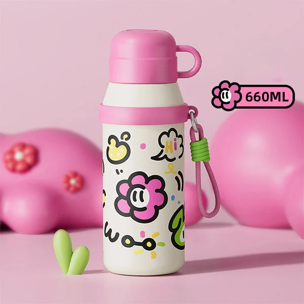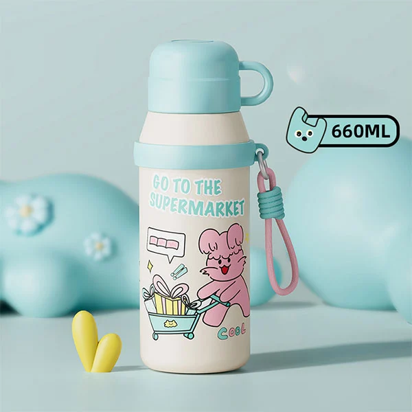 ความสามารถของขวดน้ำสแตนเลสสตีลสำหรับเด็กนี้คือ 660 มล.