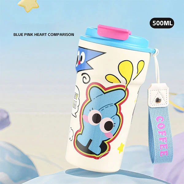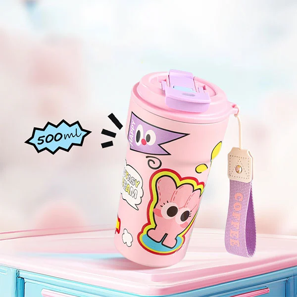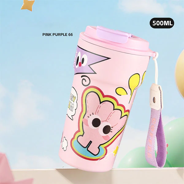 แก้วน้ำสูญญากาศ Ins ที่มีการบรรจุน้ำมาพร้อมกับที่จับ สะดวกในการพกพา