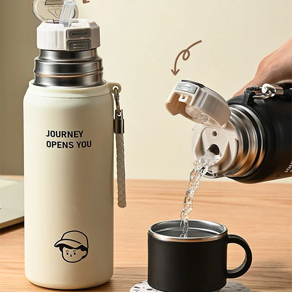 ส่วนฝา: PP ฝาบวกฝาสแตนเลส ส่วนบนของฝาสแตนเลสสามารถใช้เพียงอย่างเดียวเป็นถ้วยเล็ก ๆ ส่วนฝาปิดที่ปิดผนึกเป็นฝาปิดสองครั้ง สามารถกดสวิตช์หนึ่งเพื่อเปิดเพื่อดื่มโดยตรงทำให้น้ำเข้าสู่ถ้วยเล็ก ๆ ในเวลาเดียวกัน ปุ่มอื่น ๆ สามารถเปิดส่วนฟางสำหรับดื่มน้ำผ่านฟาง