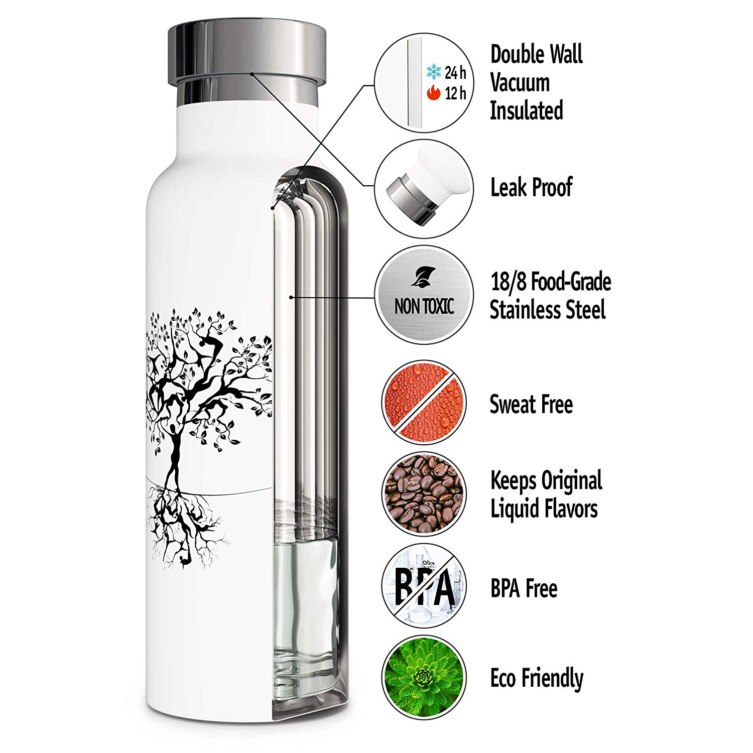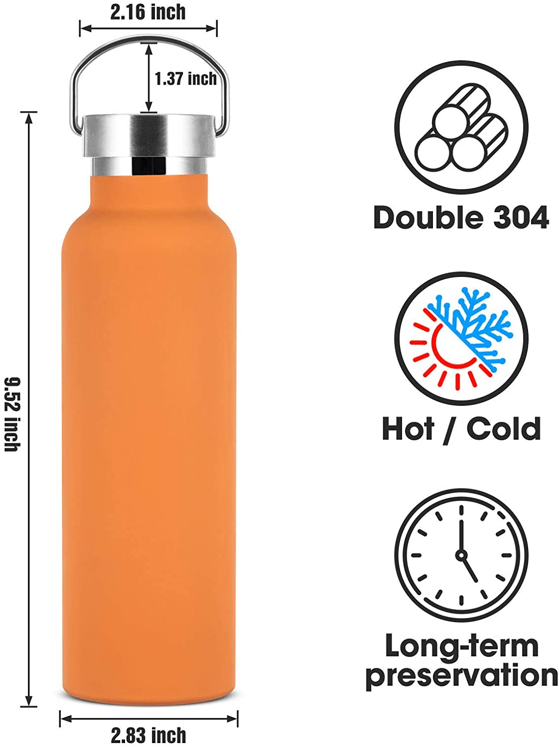 - ฉนวนสูญญากาศ: ขวดน้ำสแตนเลสสตีลที่มีผนังหุ้มสองชั้นพรีเมี่ยม